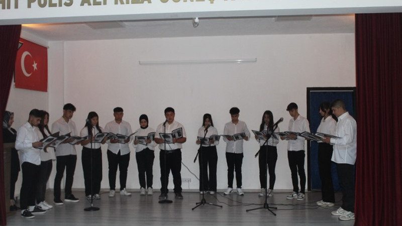 Program, saygı duruşu ve İstiklal Marşının okunmasının ardından okul müdür yardımcısı Gökhan Güneş tarafından günün anlam ve önemini belirten konuşması ile başladı. Okulun Din Kültürü Ve Ahlak Bilgisi öğretmeni Abdulkadir Sarıkuzu "Mustafa Kemal" adlı şiiri seslendirdi. Alparslan Ortaokulu öğrencilerinin hazırladığı "Bir Resim Yap Çocuğum" adlı görsel etkinliğin ardından öğrencilerin hazırladığı "Atatürk Neredesin?" oratoryosu ve "Pandomim Gösterisi" sergilendi.