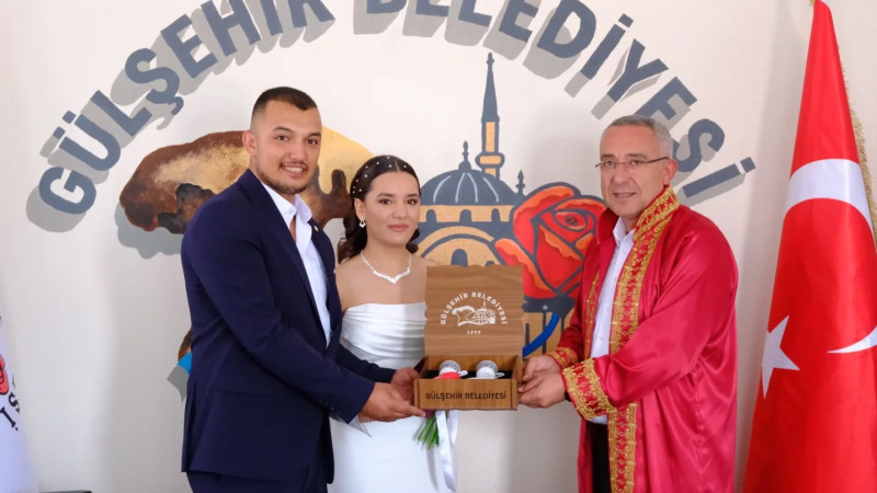 Gülşehir Belediye Başkanı Erkan Çiftci, iyi günde, kötü günde bir ömür için “Evet” diyen genç çiftlerin mutluluklarına ortak olmaya devam ediyor.