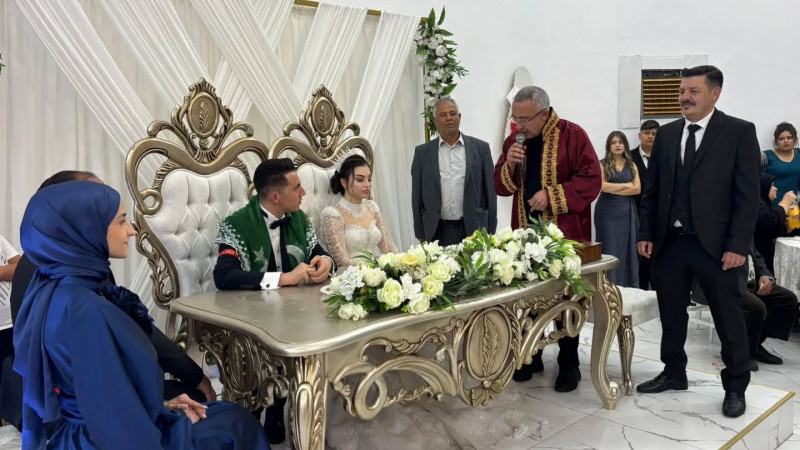 İlçe sakinlerinin en mutlu günlerinde yanlarında olan Başkan Çiftci, gerçekleştirilen nikâh töreninde Gamze Güler ve Ramazan Bucak’ın nikâhını kıydı. Genç çift bir ömür boyu mutluluğa ‘evet’ diyerek hayatlarını birleştiren imzaları attılar. Mutluluk dolu anların yaşandığı nikâh akdinin ardından Başkan Çiftci, evlilik cüzdanını gelin hanıma takdim etti. Nikâh törenine katılarak evlatlarının mutluluğuna şahitlik eden Güler ve Bucak ailelerini tebrik eden Başkan Çiftci, Gamze ve Ramazan çiftine de bir ömür boyu sağlık, huzur ve mutluluklar diledi.