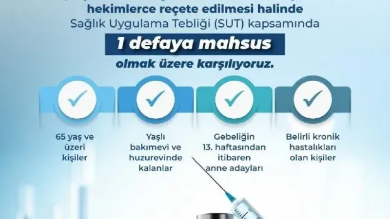 Yapılan düzenleme doğrultusunda ücretsiz grip aşısı uygulamasından; 65 yaş ve üzeri kişiler, yaşlı bakım evleri ve huzurevlerinde kalanlar, gebeliğin 13. haftasından itibaren anne adayları, belirli kronik hastalıkları bulunan vatandaşlar faydalanabilecek.