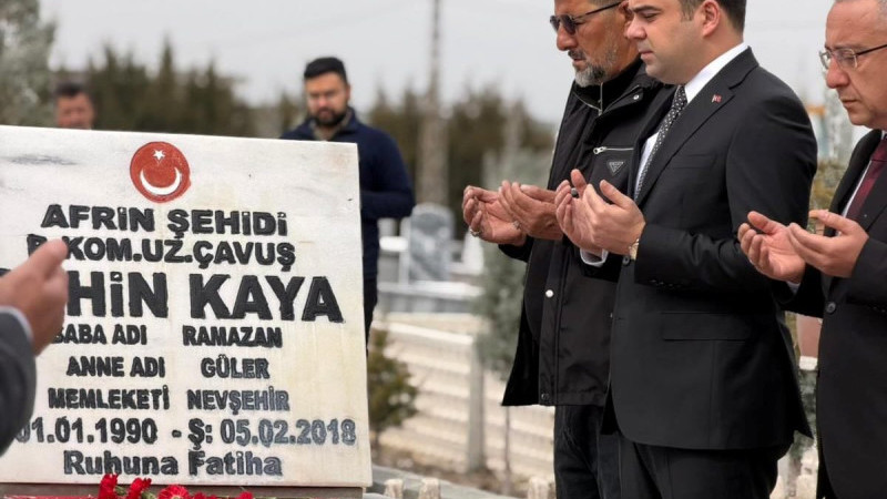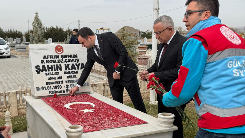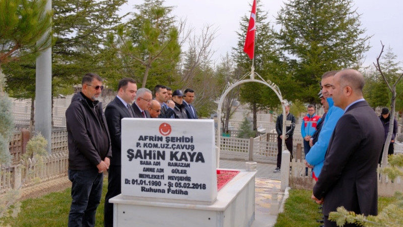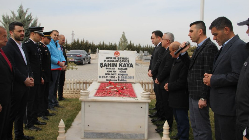 Anma programı kapsamında, 2018 yılında Afrin’de şehit düşen Şahin Kaya, ilçe protokolü tarafından kabri başında ziyaret edilerek dualarla yad edildi. Şehitlik ziyaretinin ardından, aziz şehitlerin devlete ve millete emanet edilen kıymetli aileleri de ziyaret edilerek destek ve vefa duyguları ifade edildi.