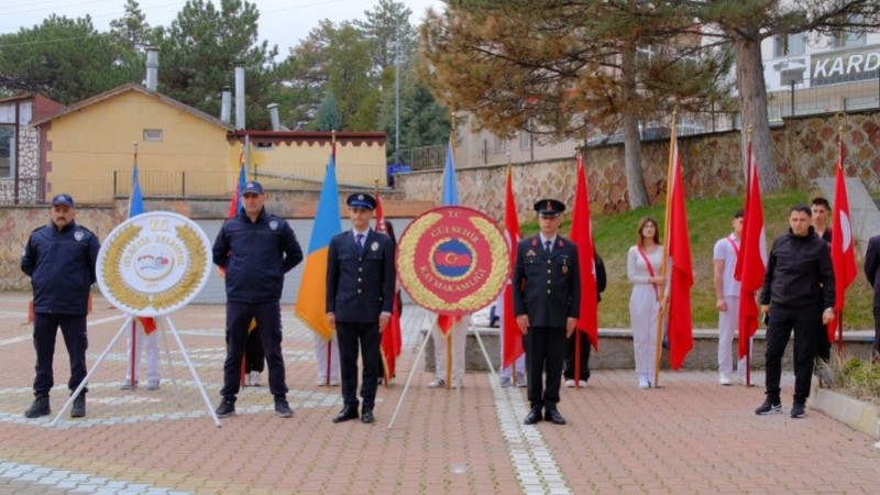 Tören, Gülşehir Hükümet Konağı önünde Atatürk Anıtına çelenk sunma töreniyle başladı. İstiklal Marşı büyük bir coşkuyla okunurken, aziz şehitlerimizin manevi huzurunda saygı duruşunda bulunuldu. Programa, İlçe Kaymakamı Tolga Değirmenci, Belediye Başkanı Erkan Çiftci, Şehit Yakınları, Gaziler, siyasi partilerin ilçe başkanları, İlçe protokol üyeleri, Sivil Toplum Kuruluşu temsilcileri, okul yöneticileri, vatandaşlar ve öğrenciler katılım sağladı.