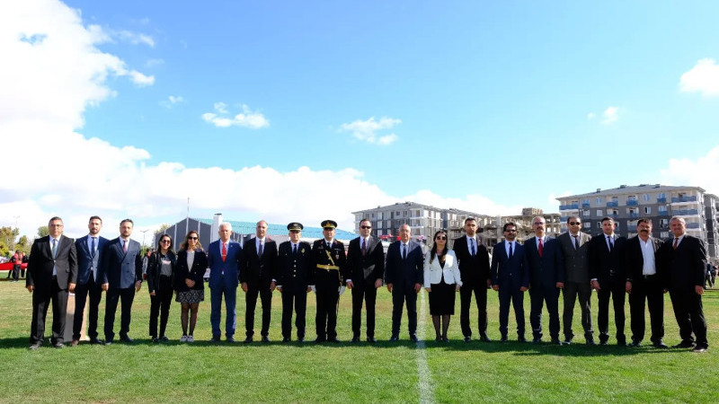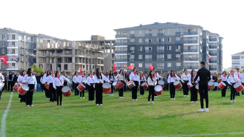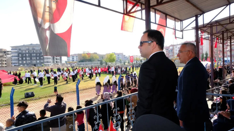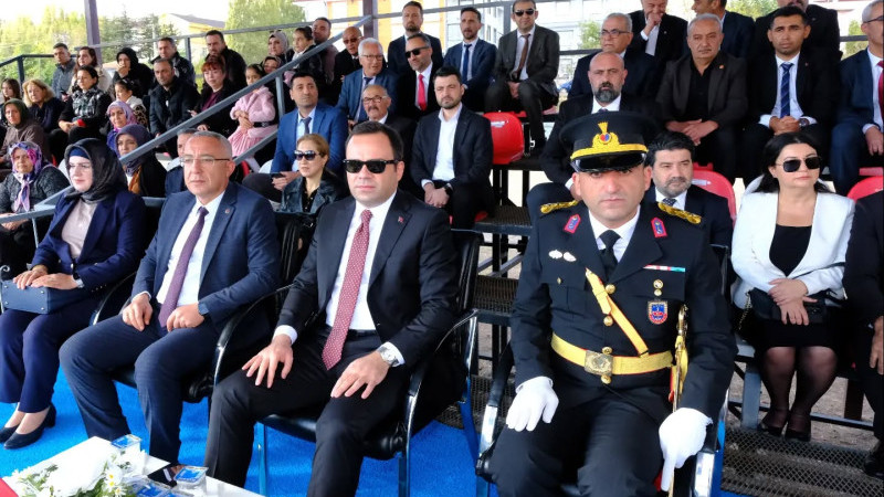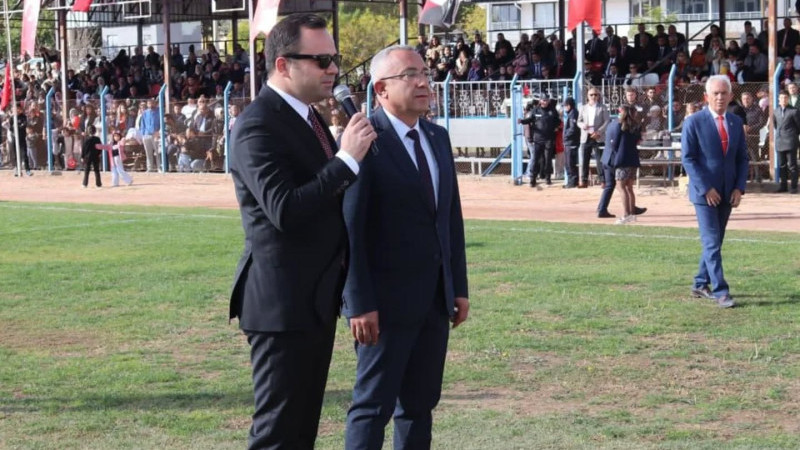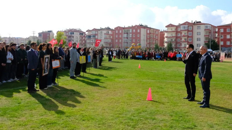 Burada, Kaymakam Tolga Değirmenci, Belediye Başkanı Erkan Çiftci, kamu kurum ve kuruluşlarının temsilcileri, siyasi partilerin ilçe başkanları, sivil toplum kuruluşları başkanları ile çok sayıda öğrenci ve vatandaşların katılımıyla düzenlenen tören, saygı duruşu ve İstiklal Marşı’nın okunması ile başladı.