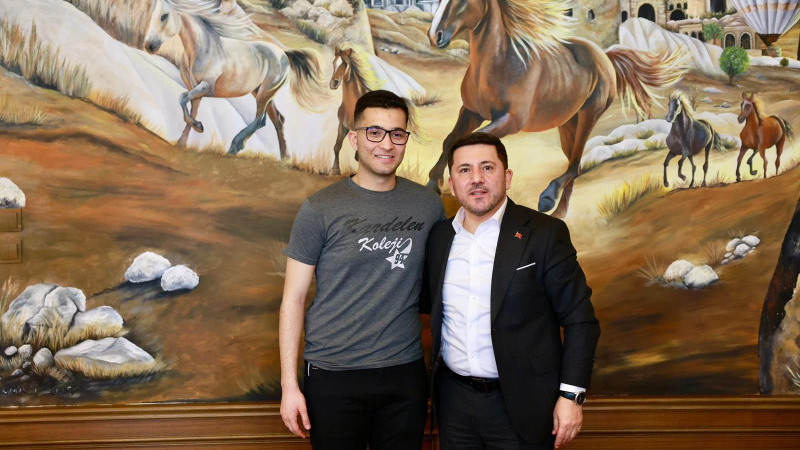 Nevşehir Belediye Başkanı Rasim Arı, MSÜ Askeri öğrenci aday belirleme sınavında Nevşehir birincisi olan Doruk Aytunç Pehlivan’ı makamında ağırladı.