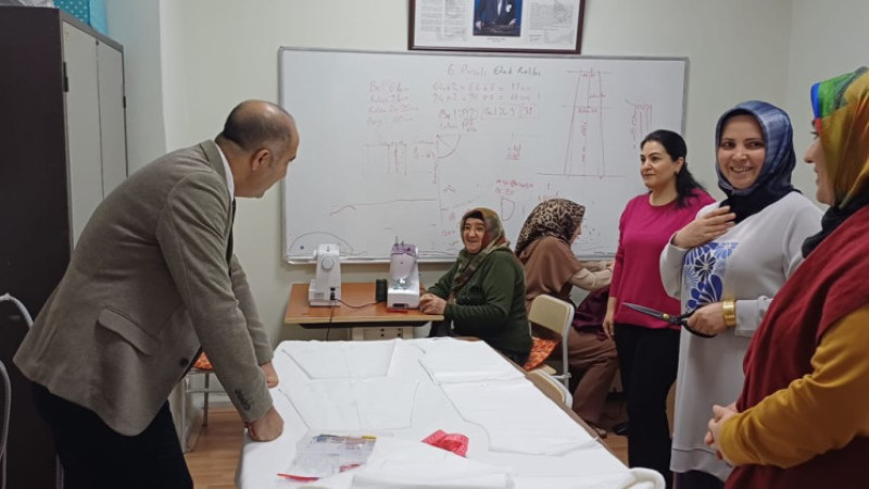 Gülşehir İlçe Milli Eğitim Müdürlüğü’ne bağlı olarak faaliyetlerini sürdüren Şehit Ali Rıza Güneş Halk Eğitimi Merkezini ziyaret eden İlçe Milli Eğitim Müdürü Çevik, kurum bünyesinde faaliyet gösteren dikiş-nakış ve okuma-yazma kursuna katılım sağlayan kursiyerlerle bir araya gelerek onlarla sohbet etti. Kursiyerlerin atölyede büyük emekle hazırladıkları ürünleri yerinde inceleyen Çevik, Kurum Müdürü Levent Atik’ten devam eden kurslar, kursiyer sayısı ve yeni dönem planlamaları hakkında detaylı bilgiler aldı.