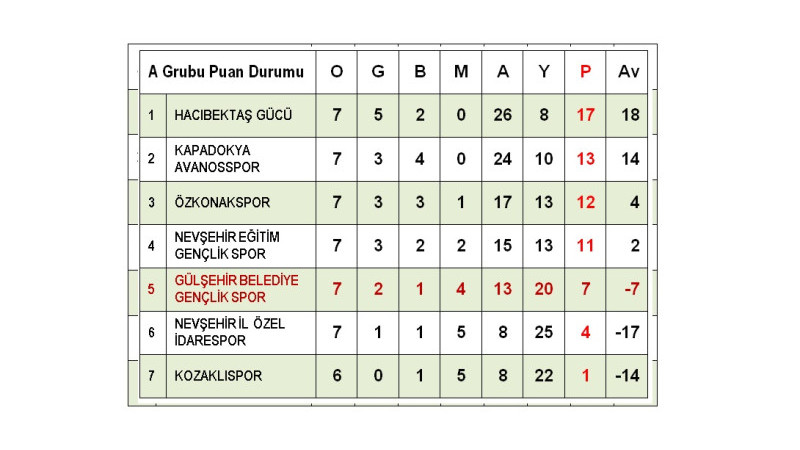 A Grubu’nun son maçında Nevşehir Eğitim Gençlik Spor ile Nevşehir İl Özel İdarespor takımları 3 Nolu Çim Saha’da karşı karşıya geldi. Ersen Özcan, Ahmet Kaan Güçlü ve Furkan Erikci’nin yönettiği mücadelede, ilk yarıyı Nevşehir Eğitim Gençlik Spor 9. dakikada bulduğu golle 1-0 önde kapattı. İkinci yarıda toparlanan Nevşehir İl Özel İdarespor, 52. ve 70. dakikalarda attığı gollerle skoru 2-1’e taşıdı. Kalan dakikalarda başka gol olmayınca müsabakayı Nevşehir İl Özel İdarespor 2-1 kazanarak haftayı galibiyetle tamamladı.