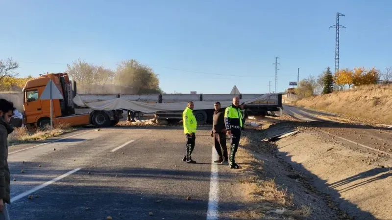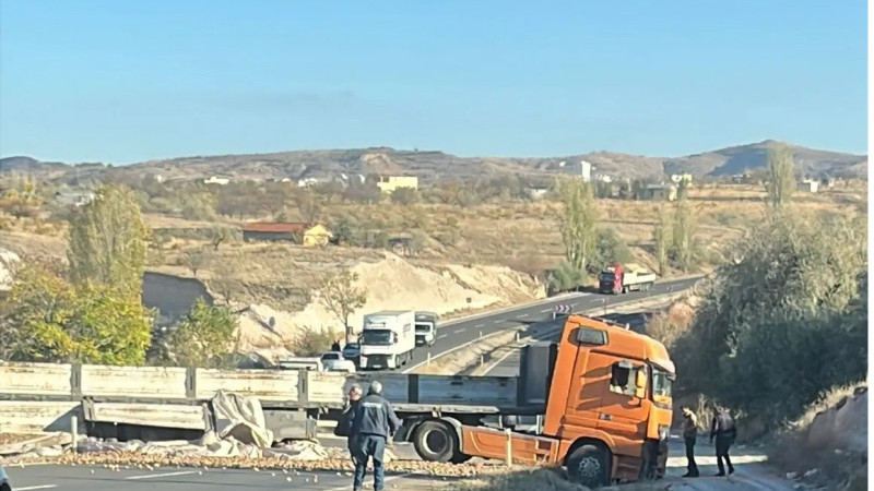 Nevşehir – Gülşehir karayolunda patates yüklü bir TIR, henüz belirlenemeyen bir sebeple kontrolden çıkarak karşı şeride geçti. Karayolu bir süre tek taraflı trafiğe kapandı.