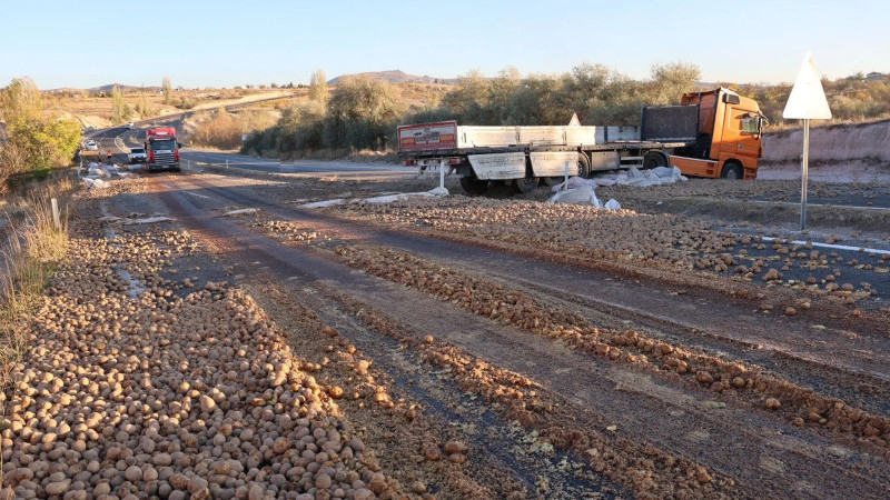 Tek taraflı trafik kazasında TIR sürücüsü Samet Ş. kazayı yara almadan atlatırken, kazanın etkisiyle TIR’ın dorsesinde bulunan 30 ton patatesin tamamı yola savruldu. Yola dağılan patatesler nedeniyle sürücüler zor anlar yaşarken, bir süre Gülşehir’den Nevşehir istikametine trafik verilemedi, trafik akışı tamamen durdu. Kaza nedeniyle yolda uzun araç kuyrukları oluştu. Olay yerine gelen polis ekipleri yol güvenliğini sağlayarak trafiği kontrollü şekilde yönlendirdi. Karayolunda trafik akışı kontrollü şekilde tek şeritten sağlanırken, Karayolu ekipleri tarafından yolda temizlik çalışmaları yapıldı.