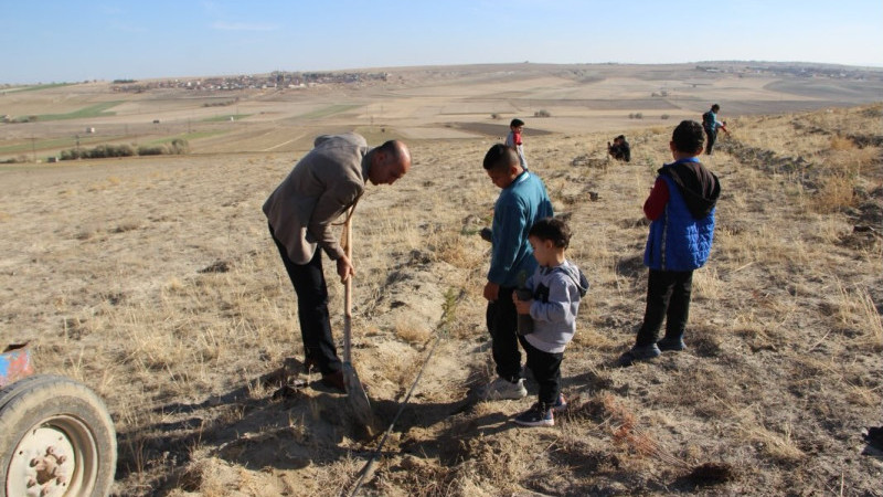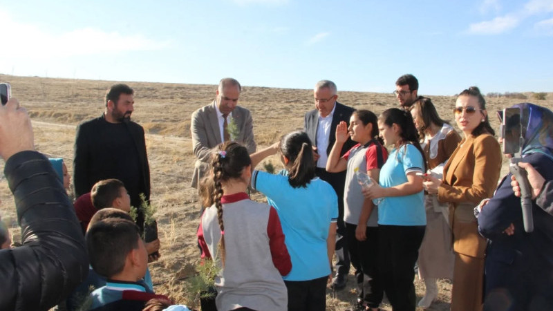 Gülşehir’e bağlı Emmiler Köyünde eğitim gören minik öğrenciler, okulları için oluşturulan Hatıra Ormanına fidanlar dikti.