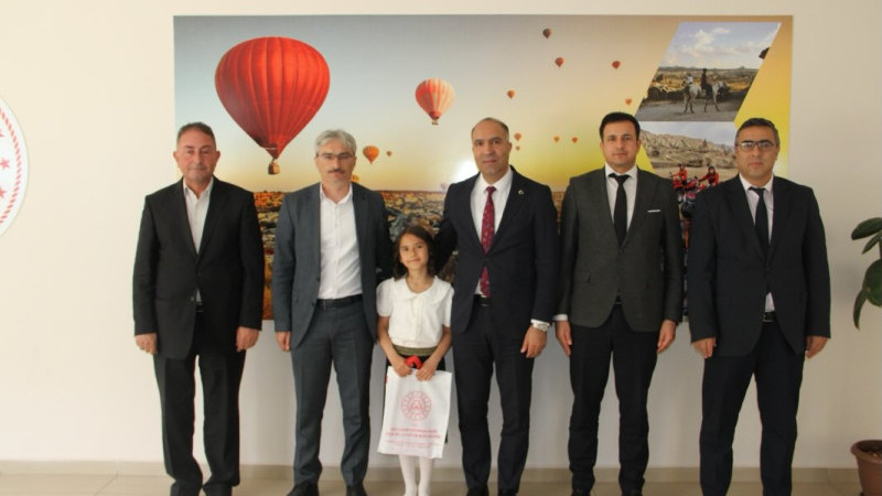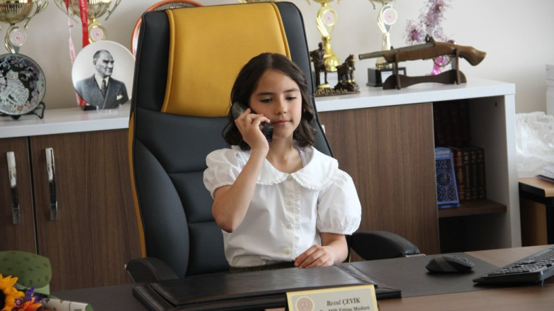 Gülşehir İlçe Milli Eğitim Müdürü Resul Çevik, makam koltuğunu temsili olarak Karavezir İlkokulu öğrencisi Aysima Diker’e devretti.