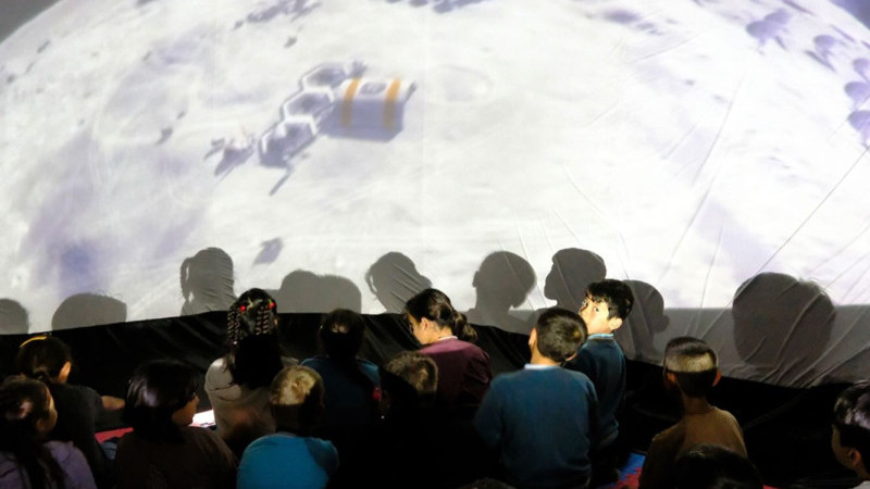 Öğrencilerin uzay ortamını gerçeğe en yakın haliyle deneyimleyebilmesi için özel olarak tasarlanan bombeli ve yuvarlak kubbeli çadır, okulun en dikkat çeken noktası oldu. Çadır tavanına gelişmiş projeksiyon sistemleriyle yansıtılan 360 derecelik görüntüler, öğrencilere adeta uzay boşluğunda süzülüyormuş hissi verdi.